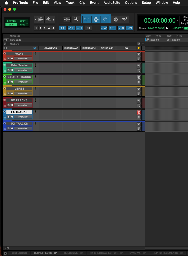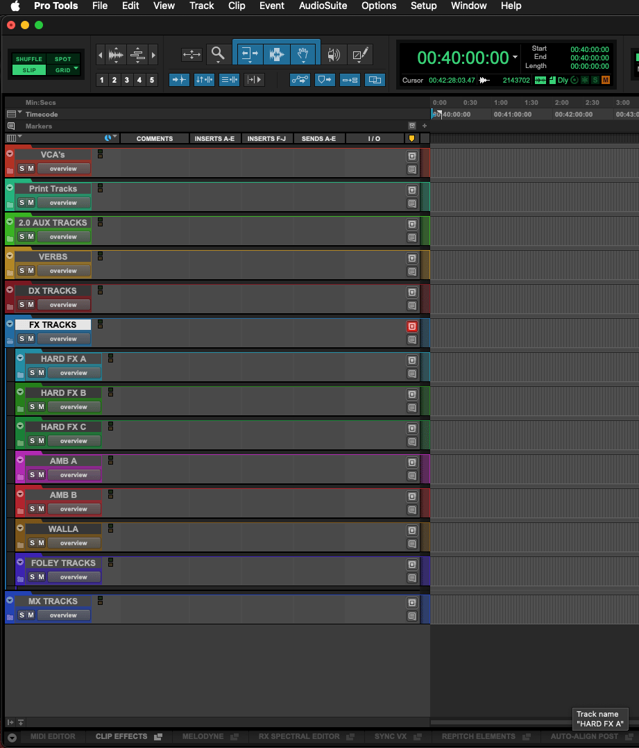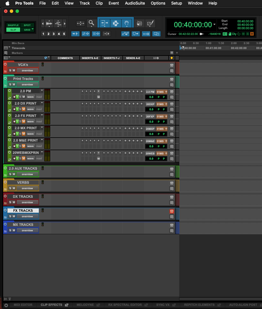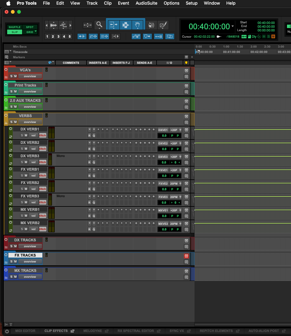 ✔ VCA faders for every category (DX, FX, Ambiences, Foley, Music, Reverbs)