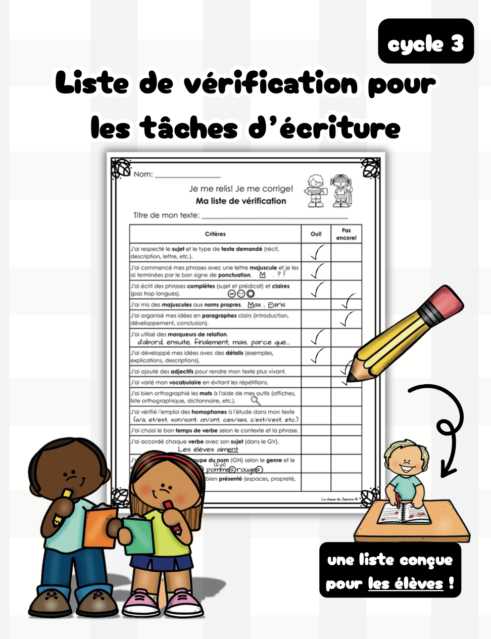 Cette liste de vérification complète aide les élèves du cycle 3 à devenir des auteurs conscients et autonomes.