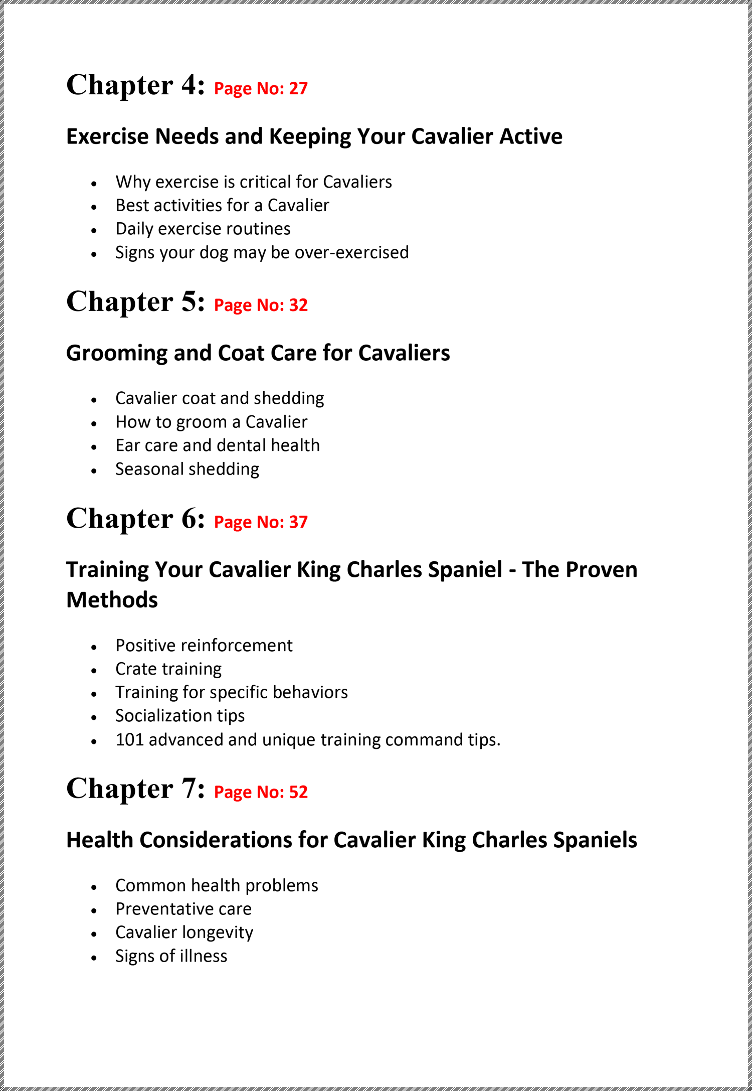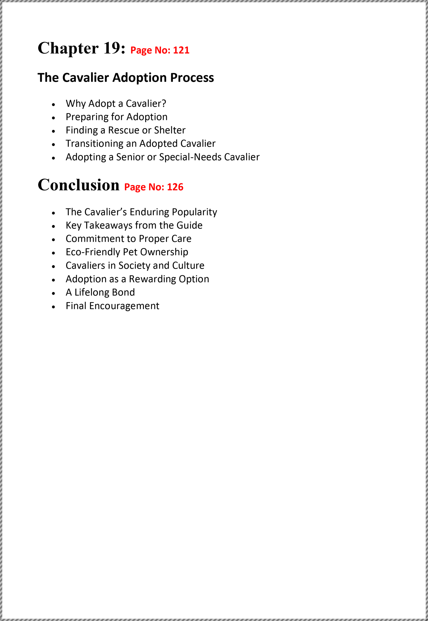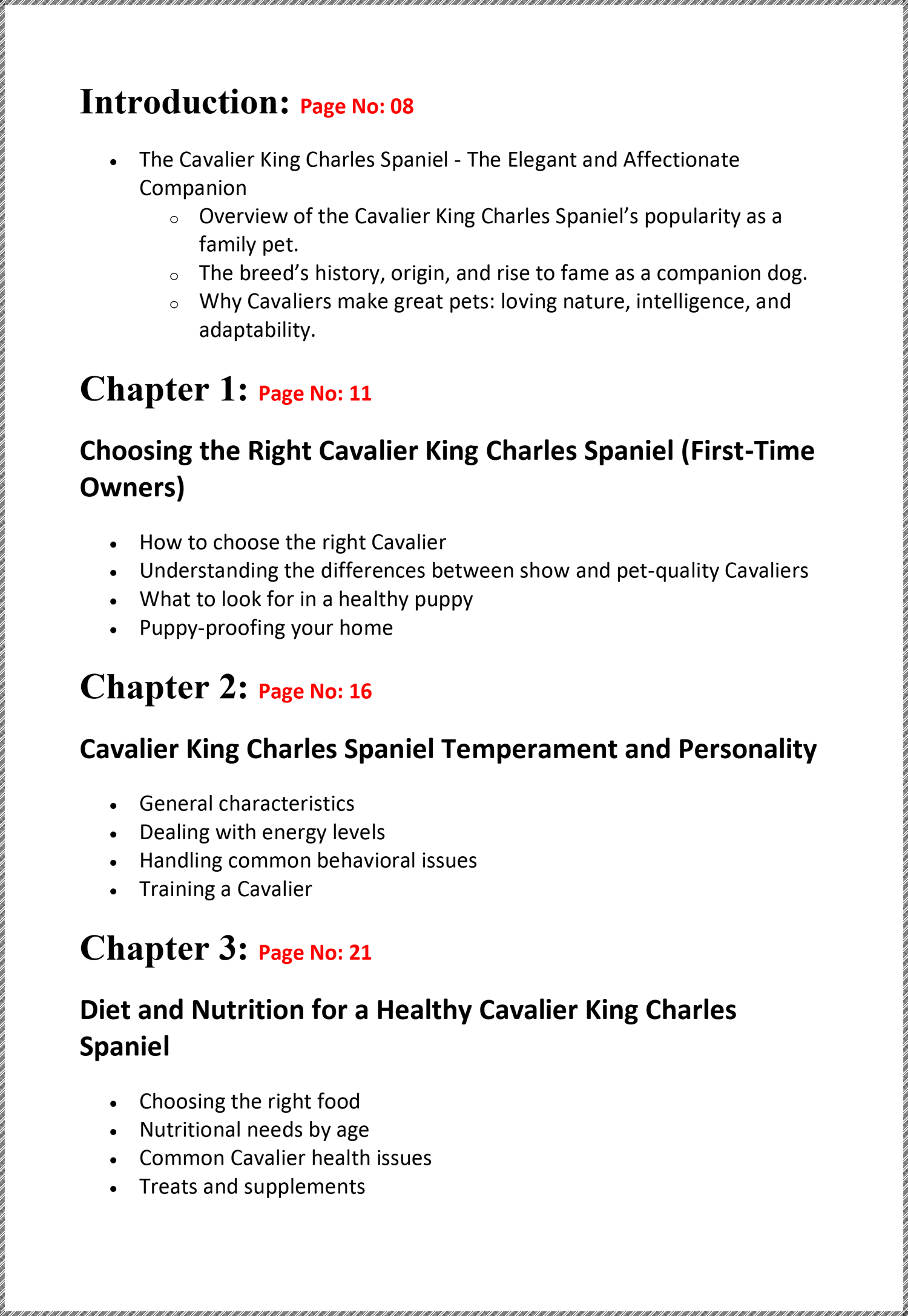 This master guide, with 21 chapters and 129 pages of expert advice, takes you through every stage of Cavalier King Charles Spaniel care. From selecting the perfect puppy to ensuring a healthy, happy senior dog, this in-depth resource provides everything you need to create a lifelong, joyful bond with your Cavalier.