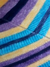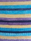 Yarn: Each stripe in the sample used a separate Southern Skeins Sock mini skein (80 yds / 73 m each skein; 75% Superwash Merino, 25% Nylon; 0.7 oz / 20 g) in one of four colorways: Wisteria, Reflecting Pool, Pacific, and Sunshine.