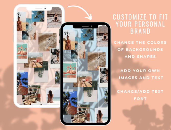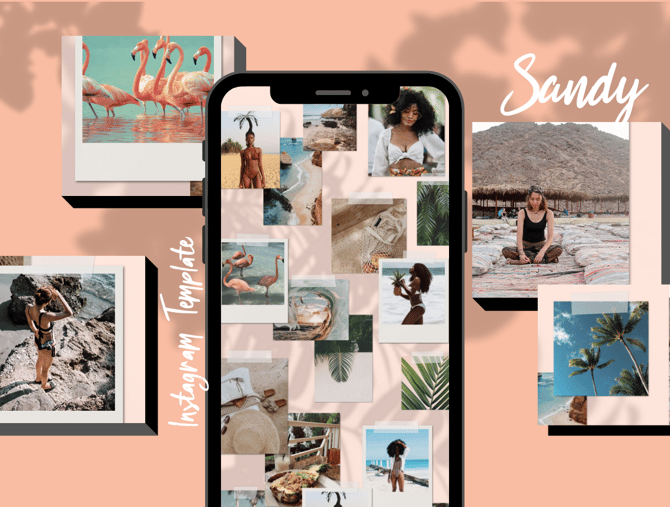 Sandy is a light, airy Instagram template for Canva desktop app. Featuring a playful, feminine design, each post has been carefully designed to tell a story. This template comes in a soft salmons and orange color palette, but can it be easily customised to suite your brand. Simply add your photos and text, split your grid using the instructions provided, and you've got a beautiful Instagram feed!