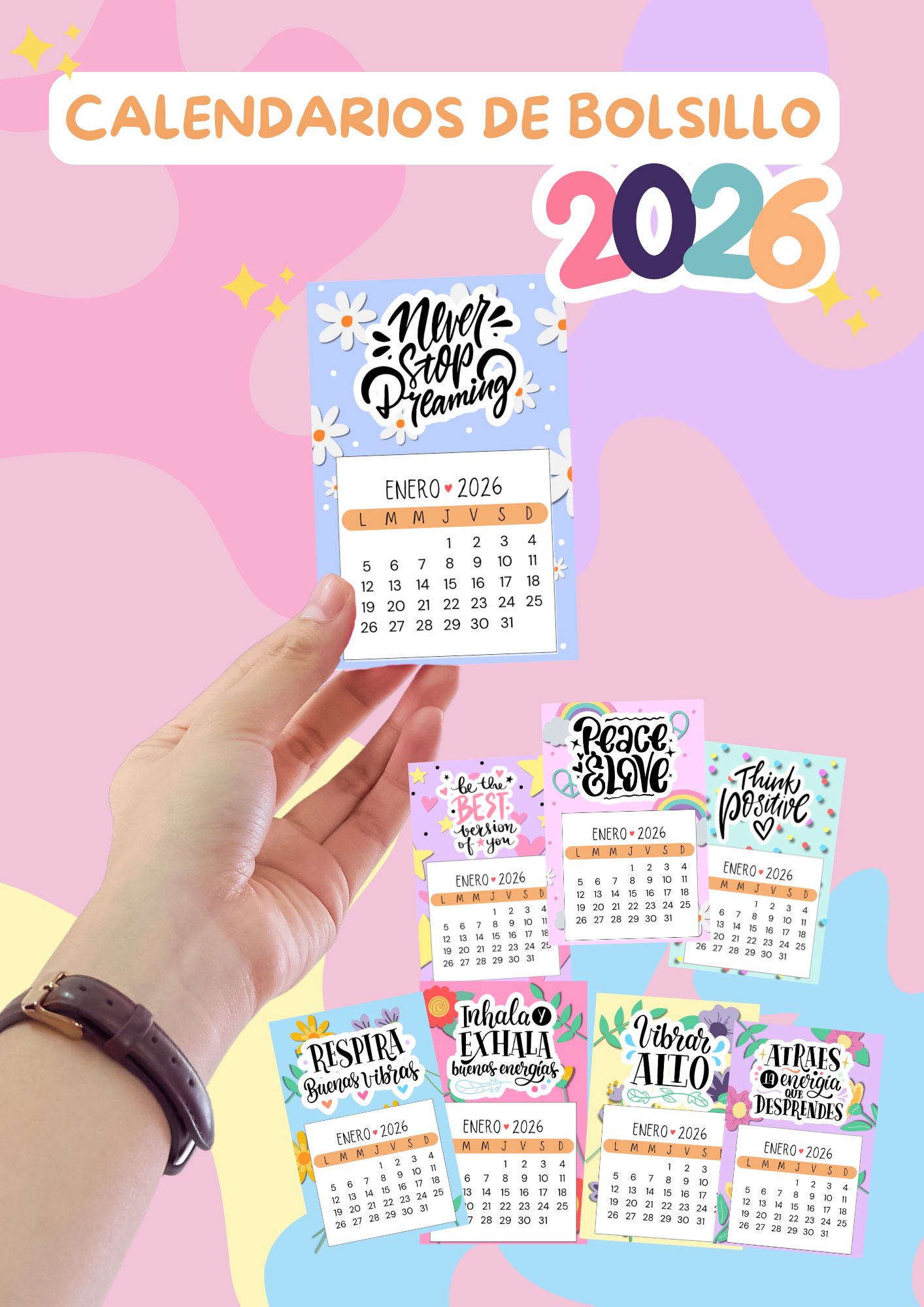 Mini calendarios listos para imprimir, ideales para llevarlos en el bolso o la cartera, para decorar la oficina, para regalar.