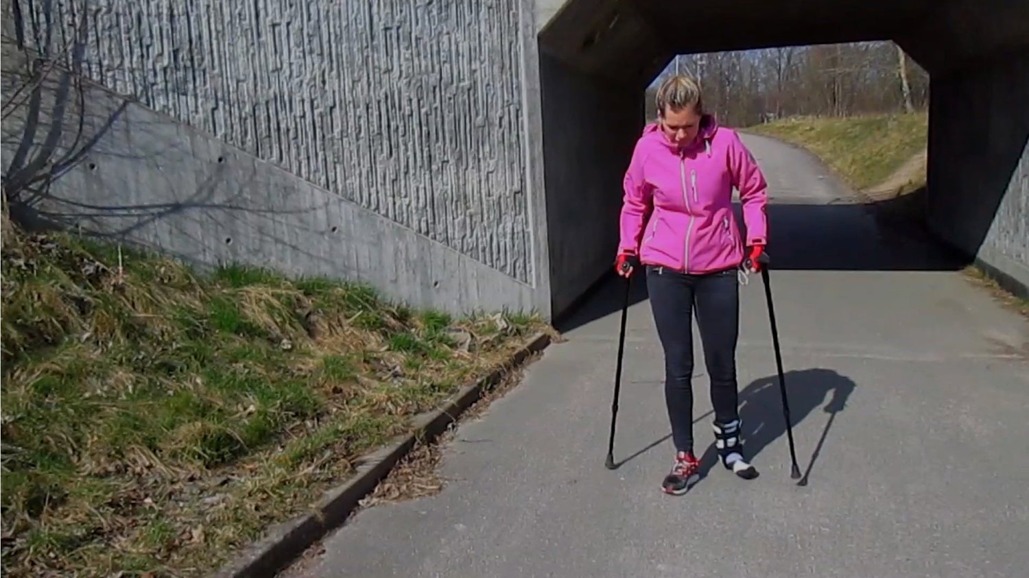 Poor Sanne is so hurt in her left foot because of a very bad sprain, but she still pushes herself to practice on walking with it anyway because she thinks it will help her heal faster. Sanne takes it very, very slowly as she carefully lets her injured foot down to the ground for each step. The Aircast that she’s wearing is helping a little, but not much when it comes to walking. Despite being in such pain, Sanne is incredible as she manages to walk quite a far way.