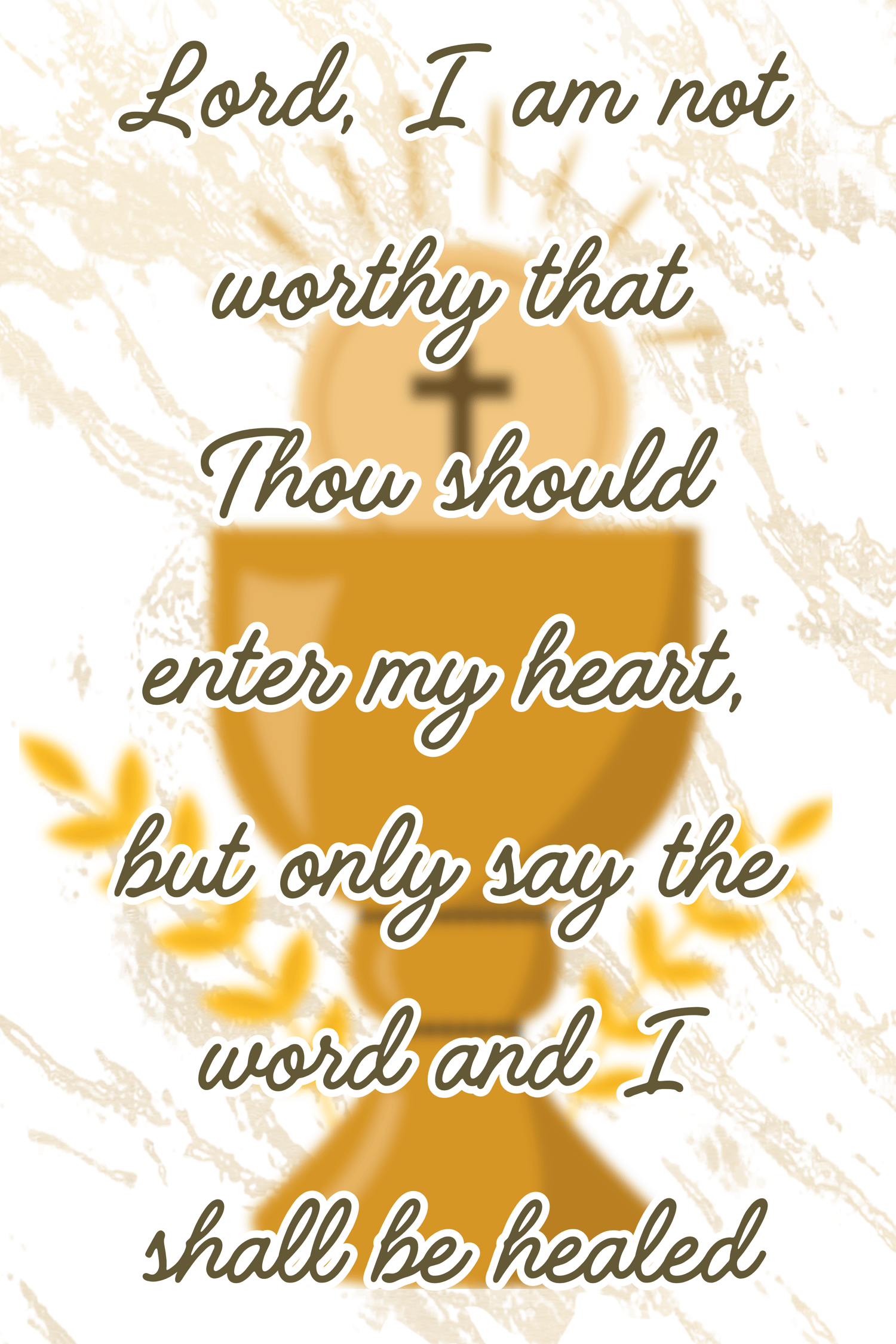 Embrace the beauty and humility of the Eucharistic prayer with this inspiring Catholic printable. Featuring the reverent words “Lord, I am not worthy that Thou should enter my heart, but only say the word and I shall be healed,” paired with a radiant host and chalice design, this piece invites reflection, faith, and devotion.