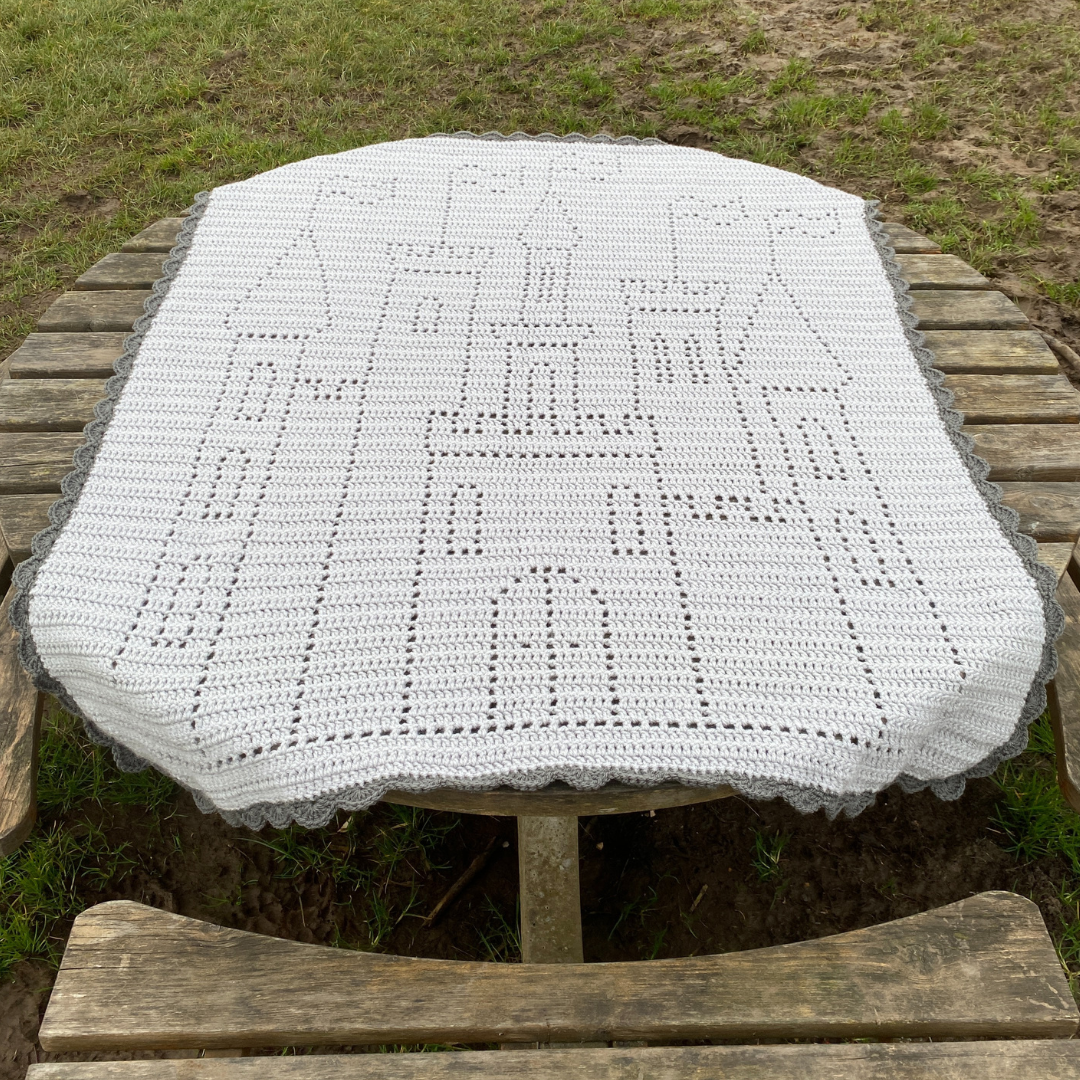 This beginner-friendly design works up quickly, with simple repeats and no colour changes — perfect for relaxed stitching on the go or cosy evenings at home. The finished blanket (before adding the border) measures approx. 127 x 111 cm (50 x 44 in), making it an ideal size for children, or for anyone who loves a touch of adventure.