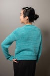 Shown in SweetGeorgia Yarns BFL + Silk Fine (affiliate) in Glacier (370 yd / 338 m per 3.5 oz / 100 g skein; 75% Bluefaced Leicester Wool, 25% Silk): 3 (4, 4, 4, 4)(4, 5, 5, 6)(6, 6, 7, 7) skeins. Yardage is noted for Cropped Length and Long Sleeves. Refer to yardage above for other versions.