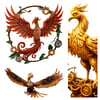 These stunning phoenix designs each offer a unique take on the legendary firebird! The collection features: