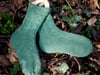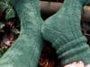 À titre indicatif j’ai utilisé pour une taille 23, cou-de-pied 9 cm et pointure 38 : 330 m au total (165 m par chaussette), pour une tige de 18 cm depuis le haut du talon.