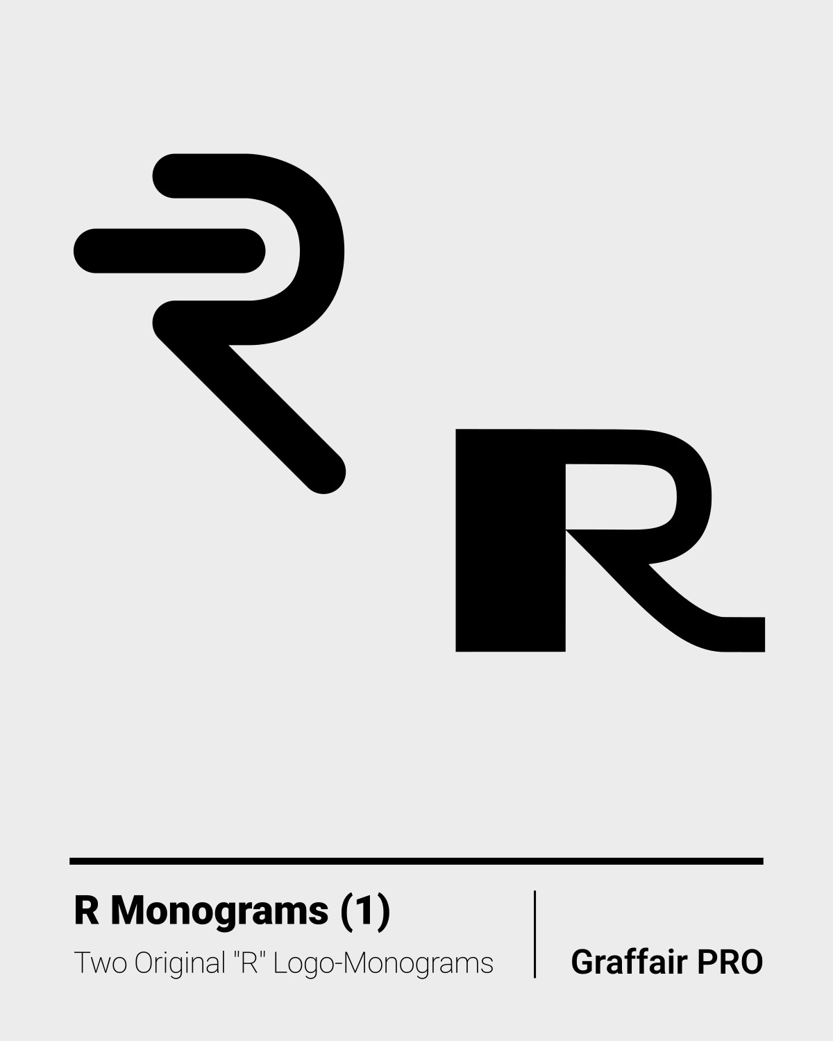 R Monograms (1): The 1st set of two original "R" logo monograms, included in the "1050 SVG Monograms" super bundle, which also features an Index catalog.