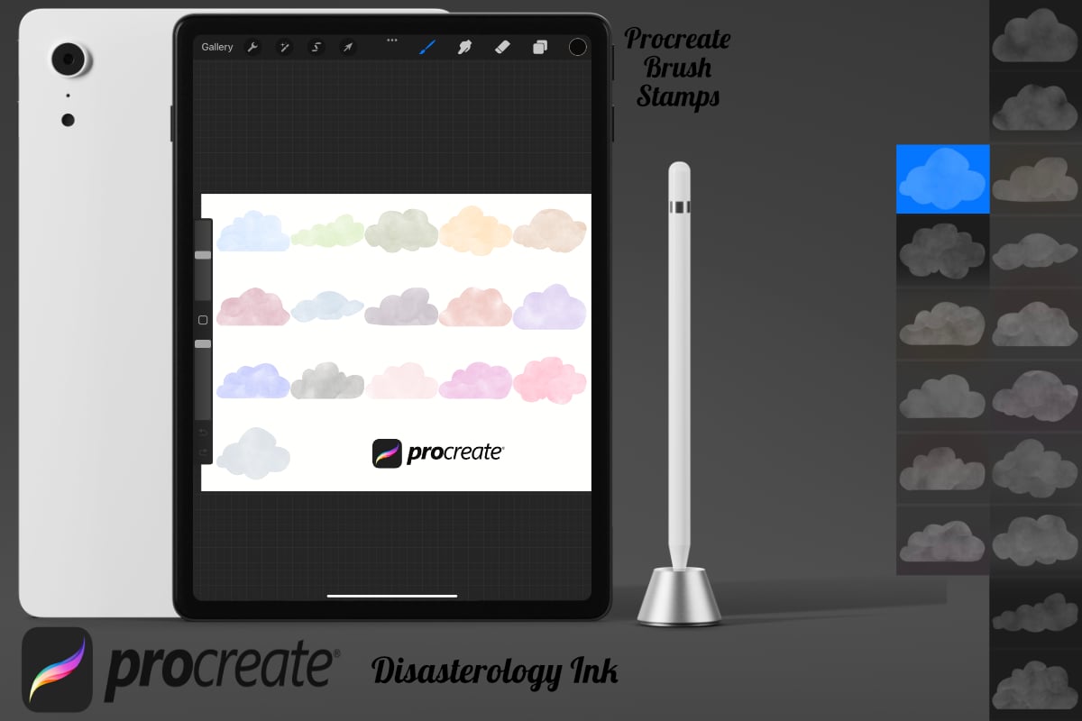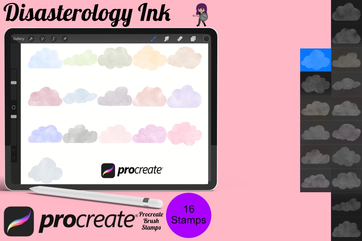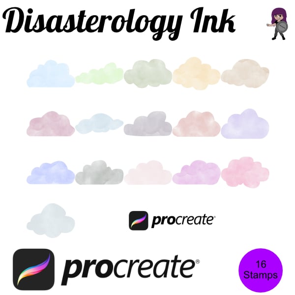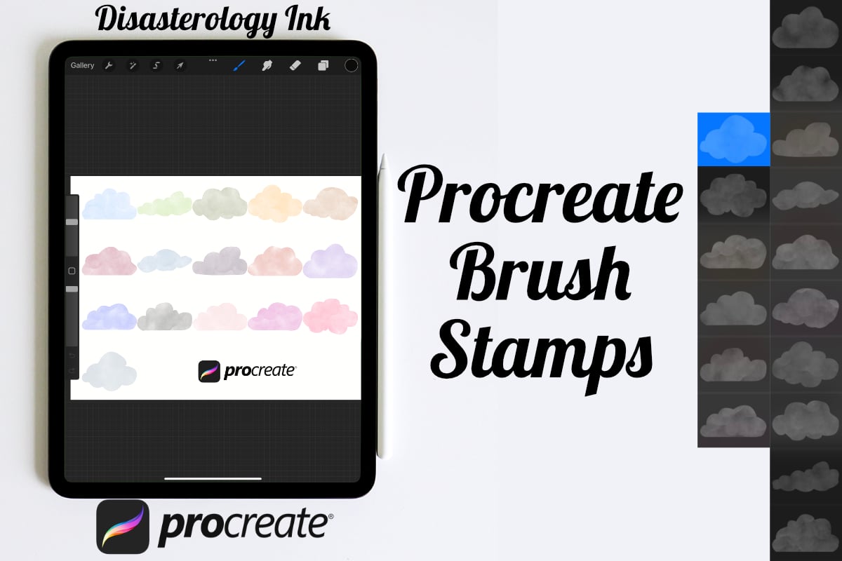 Procreate stamps save time when drawing, saving the effort of having to recreate the same thing for multiple designs and projects, save time on your design by purchasing these watercolour cloud brush stamps so you can utilise that time on creating more beautiful art.