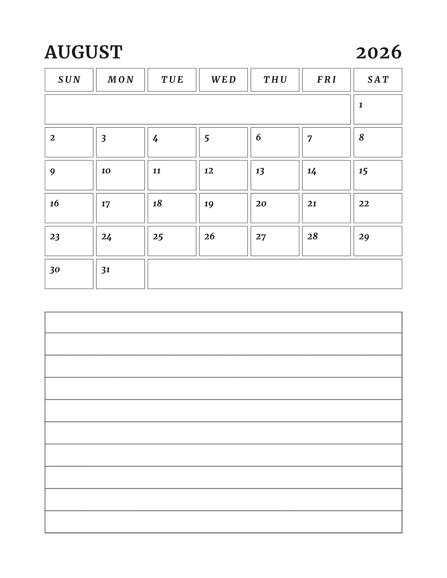 This 2026 Google hyperlinked calendar is minimalistic, grayscale and easily fits into any aesthetic!