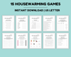 These 15 Housewarming party games make the perfect housewarming occasion, Apartment warming, Housewarming Shower and/or welcome-to-the-neighborhood gift. This Party Game Bundle adds fun and laughter for kids and adults alike.
