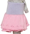 The girl who loves to twirl and whirl will love the two ruffles in this berry sweet Strawberry Skirt with subtle berries created with eyelets and bobbles.  An elastic waistband makes it comfortable for girls-on-the-go and knitters-on-the-go will love the clear directions for this in-the-round skirt and ruffles knit separately for extra portability.  Make bobbles by turning your work or follow the directions for backwards knitting and add a new skill to your repertoire.  The cute, matching Blackberry Hat, acts as a gauge swatch.