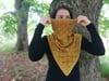 The Acorn cowl resembles a shape of a traditional triangular shawl, but it is worked in round from top down. The simple lace pattern repeats the form of acorns laying on the ground.