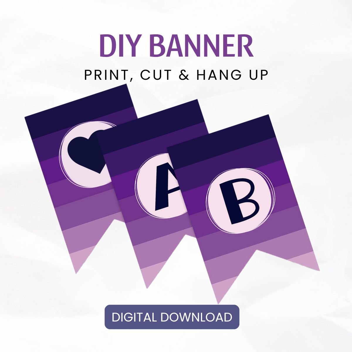 Purple Printable Pennant | Birthday Banner | Party Decoration | DIY