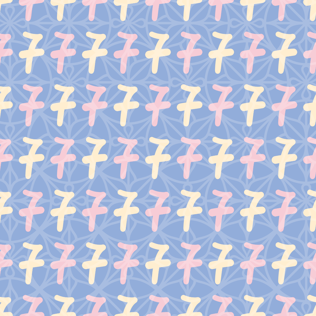 Cute number seven seamless vector pattern. Hand written type illustration background.