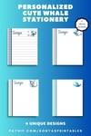 Personalized Cute Whale Stationery | Personalized Whale Notepaper | Cute Whale Writing Paper | Personalized Whale Penpal Paper