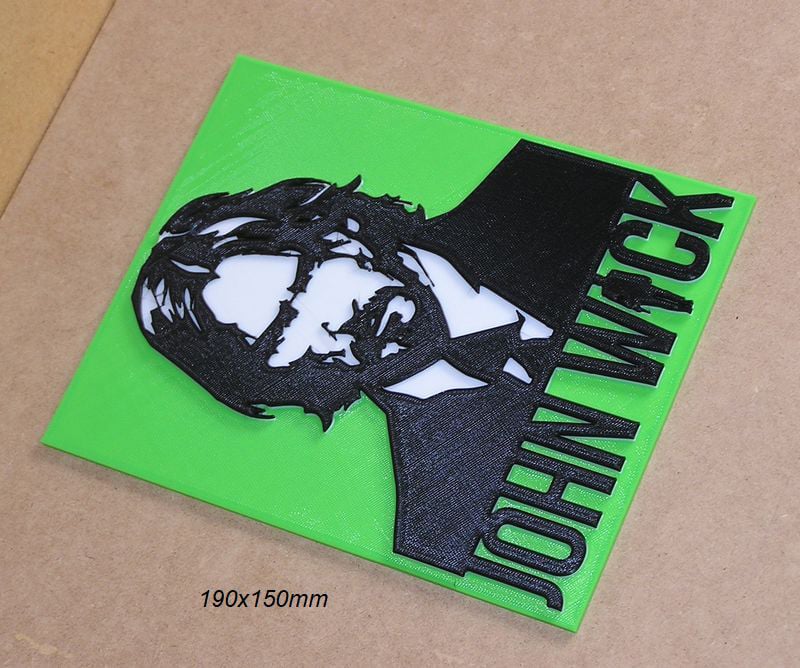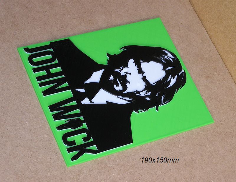 Jhon Wick, Keanu Reevees Poster, Sign, Logo of the movie, these STL and Gcode files have been created to be printed in various colors with any FDM type printer. The color changes have been made with the Elegoo Neptune 3 Pro printer, but they can be printed on any printer.