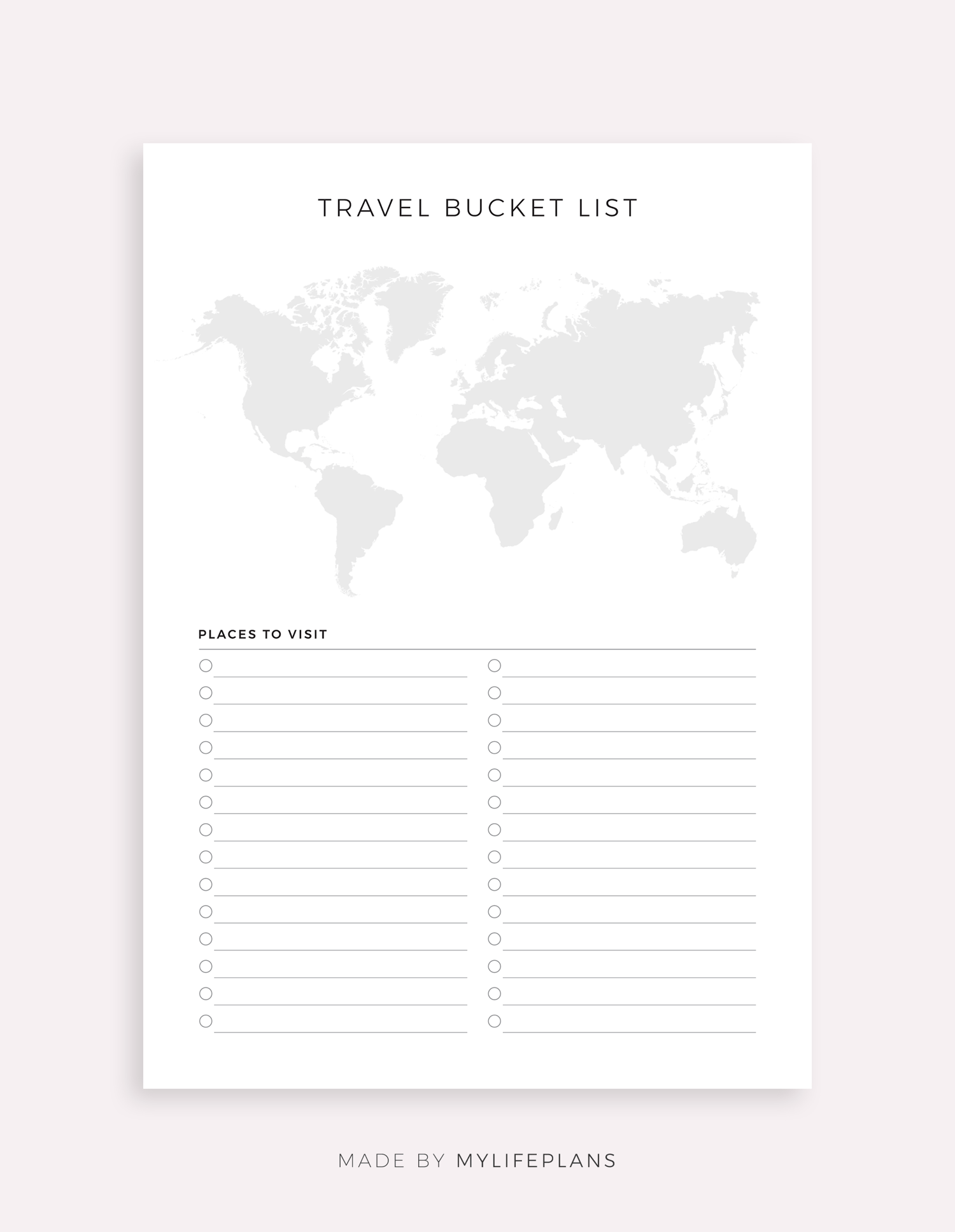 This is a printable travel bucket list — just download, print, and start using it right away.