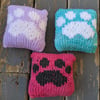 The paw print pin cushion is knit in one piece from bottom to top, the knitting patetrn has chart and written directions.
