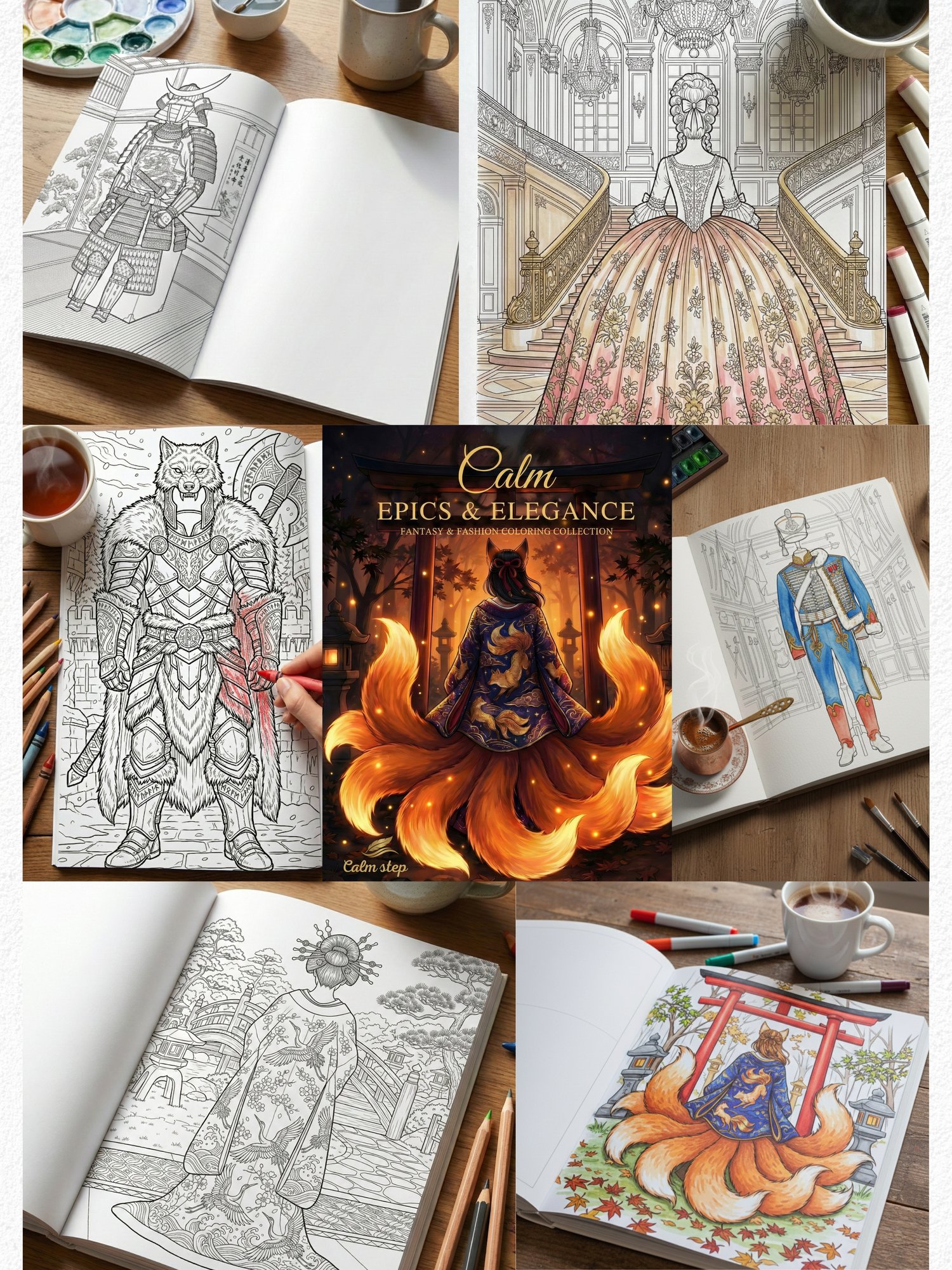 Begin a serene journey with Calm Step. This digital collection features 50 high-quality fantasy and fashion designs.