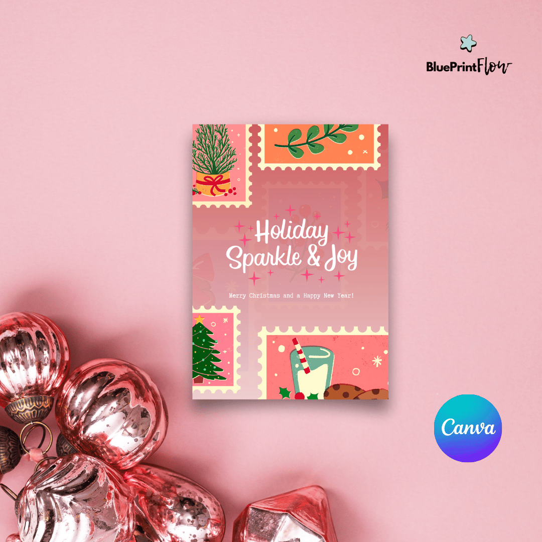 Pink Holiday Sparkle & Joy Christmas Card Template – Editable Canva Design