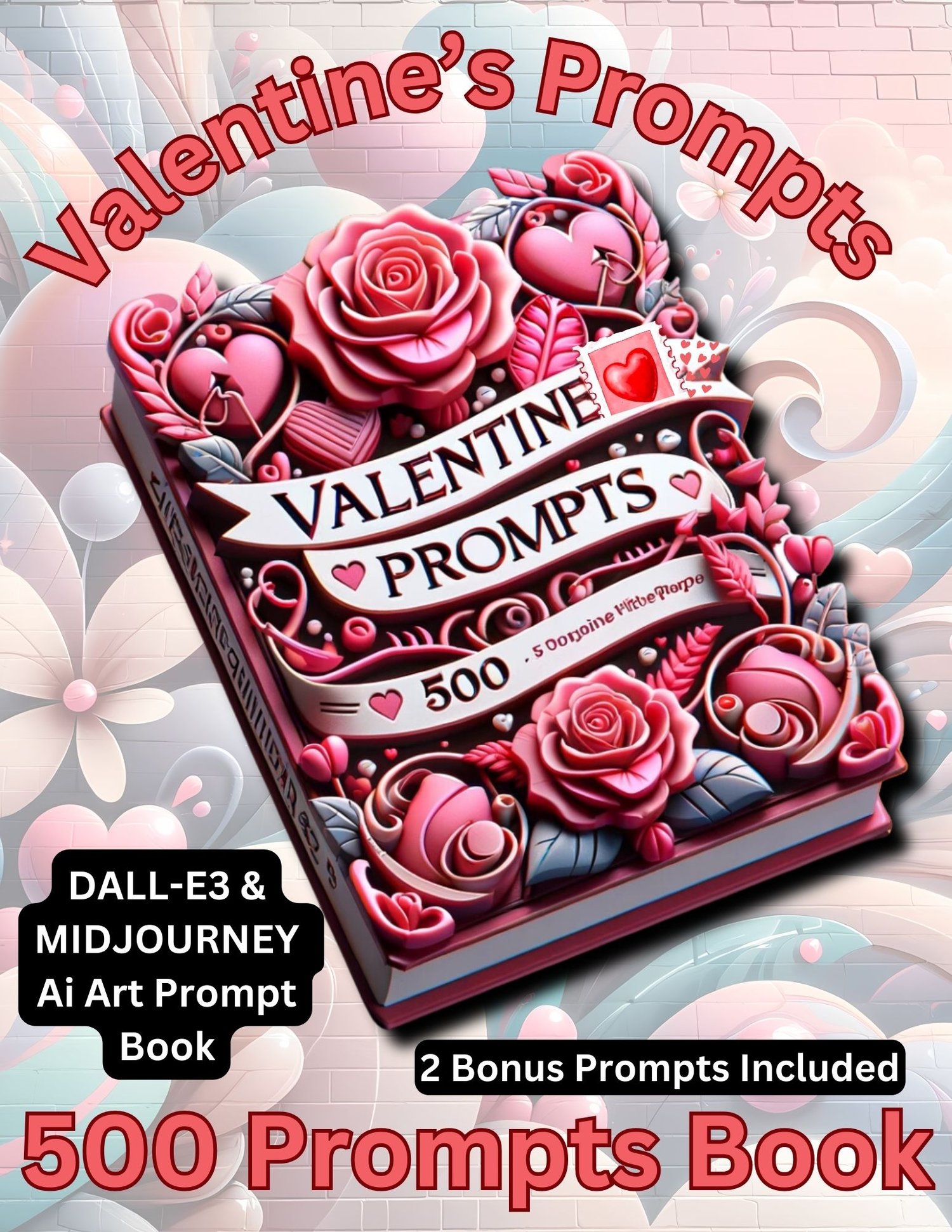 "Unlock the magic of love and creativity with our '500 Valentine's Prompt Book,' meticulously crafted to inspire artists, writers, and dreamers alike. These carefully curated prompts are your gateway to exploring the myriad facets of love, suitable for various generators including Dall-E, Leonardo, Midjourney, and more. From the enchanting whispers of first love to the cozy warmth of enduring affection, each prompt is a key to a realm where romance paints every corner. Immerse yourself in scenes of candlelit dinners, moonlit strolls, and heartwarming family celebrations, each vividly detailed to spark your imagination.