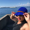 sample knit with Malabrigo Arroyo (100% Superwash Merino) - (334 yards / 305 meters, 3.53 ounces / 100 grams per skein) in Matisse Blue (MC) and Sunset (CC) in Women’s Medium