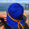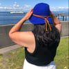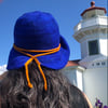 The ‘igal is a cord, usually black and made of goat’s hair, worn doubled to keep the ghutrah (a traditional Saudi men’s headdress) in place. This bucket or cloche hat, more feminine in nature, is knit in one piece, beginning with a provisional cast on, with a picot hem and doubled brim. The ‘igal in this design is knit in a contrast color and attached so that the entire piece is seamless.