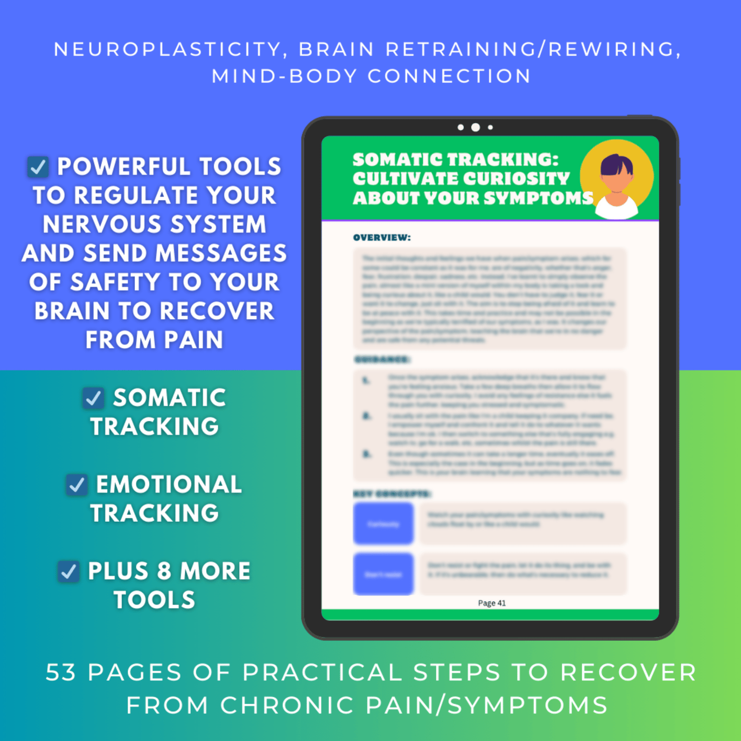 ✅ This guidebook describes powerful tools to regulate the nervous system and rewire the brain to heal pain/symptoms, including Somatic Tracking and Emotional Tracking.