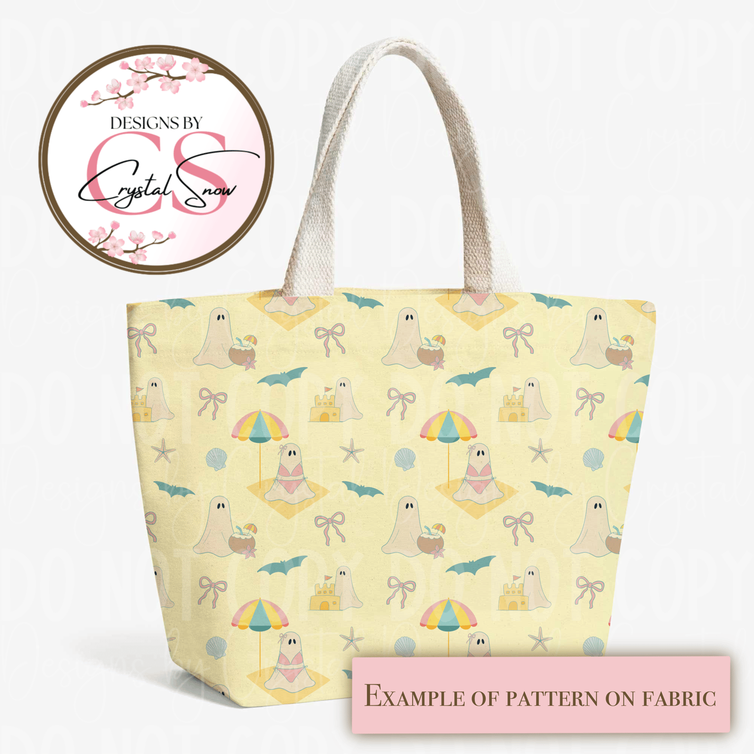 Ghost Beach Seamless Pattern | 12x12 Hand Drawn Spooky Summer Tile | Pastel Halloween PNG for Sublimation, Planners & Crafts