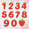 The package includes the numbers 0 through 9, plus an additional strawberry icon, allowing for multiple combinations for personalized projects.