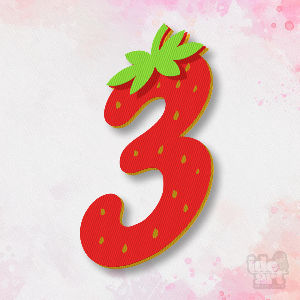 A collection of decorative numbers inspired by strawberries, with a fun and eye-catching style ideal for creative projects. Each number features an organic design with seed and leaf details, creating a sweet and thematic look perfect for cheerful compositions.