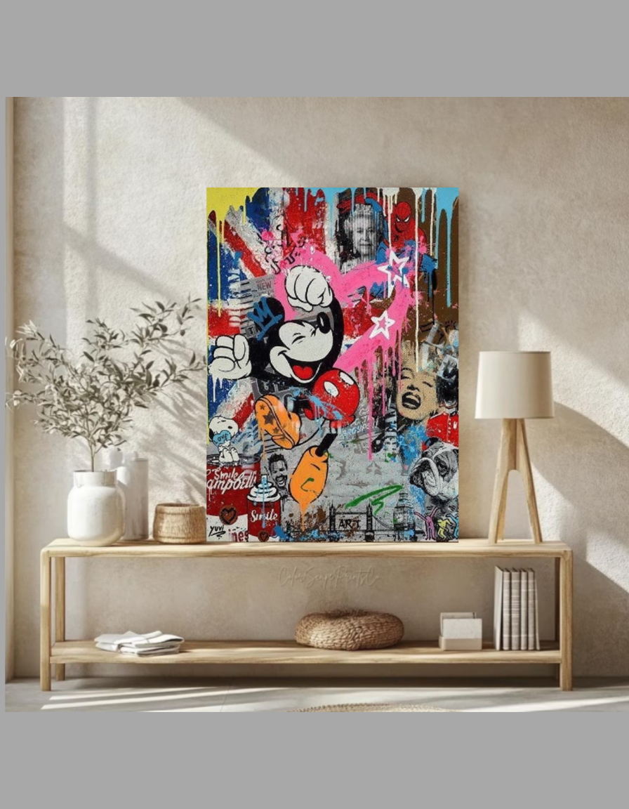 Mickey Mouse Pop Art Print - Vibrant Graffiti Street Art with Spider-Man, Marilyn Monroe, and British Icons Downloadable Wall Decor