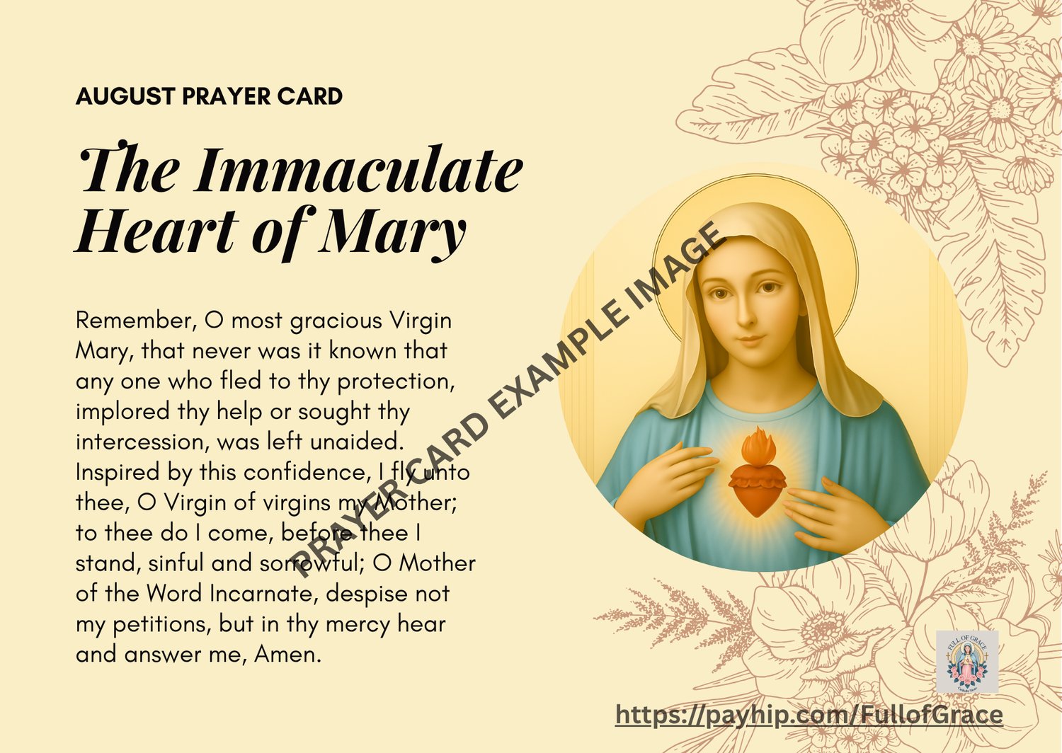 August – The Immaculate Heart of Mary Prayer Card