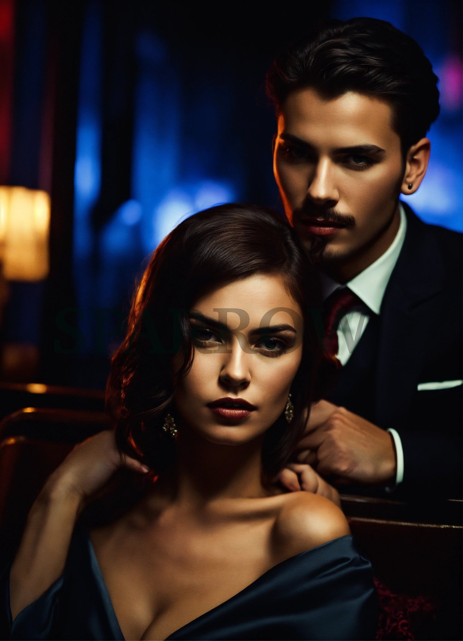 Shadowy cityscape, towering skyscrapers, dimly lit alleys, glow of neon signs, danger, passion, forbidden love, organized crime, sleek black cars, cigars, hidden weaponry, mystery, seductive couple, glamorous attire, intense gazes, secretive embraces, allure, swirling smoke, dark suits, ornate masks, vintage typewriters, flickering candlelight, complex relationships, tension, loyalty, desire, sultry, dangerous world, mafia romance, blood-red roses, silk ties, leather gloves, brass knuckles, shattered glass, playing cards, poker chips, gold chains, diamond-studded accessories, fedora hats, red lipstick stains, old-fashioned revolvers, secret meetings, handwritten notes, velvet ropes, dimly lit speakeasies, champagne flutes, engraved cufflinks, feathered quills, vintage photographs, wisps of gun smoke, double-crosses, silk scarves, brass light fixtures,star-crossed lovers, magical connections, love in the air. Romantic scene, Love concept, Storytelling, Digital art, AI, Creative design, Surreal atmosphere, Dreamy backdrop, Magical elements, Beautiful couple, Artistic composition, Commercial use, Atmospheric lighting, Mystical setting, Relationship concept, Emotive characters, Fictional love, Editorial use, Advertising, Marketing, Social media, Website design, Blog post, Article illustration, Book cover, Magazine layout, Poster design, Brochure, Presentation, E-book, Print material, Digital publication, Educational materials, Background image, Wallpaper, Conceptual art, Romantic moonlit scene, Enchanted forest setting, Moonlit meadow, Silhouetted trees, Nighttime romance, connection imagery, Romantic, Moonlit path, young adult romance, YA, serialized online fiction cover image, Radish, Dreame, GoodNovel, iReader, Vella, SWAG, book, author, writer, blogger, creator