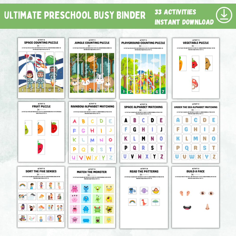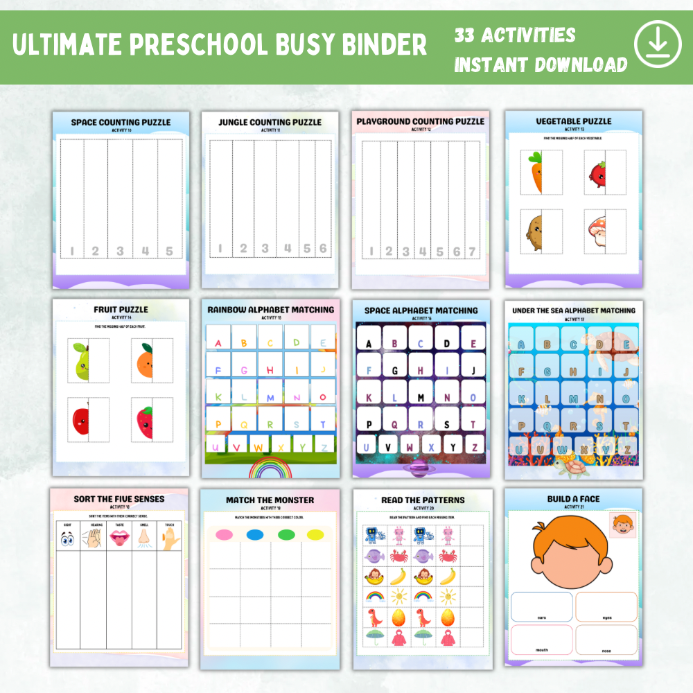 Ultimate Preschool Busy Binder – 33 Printable Activities for Toddlers & Preschoolers