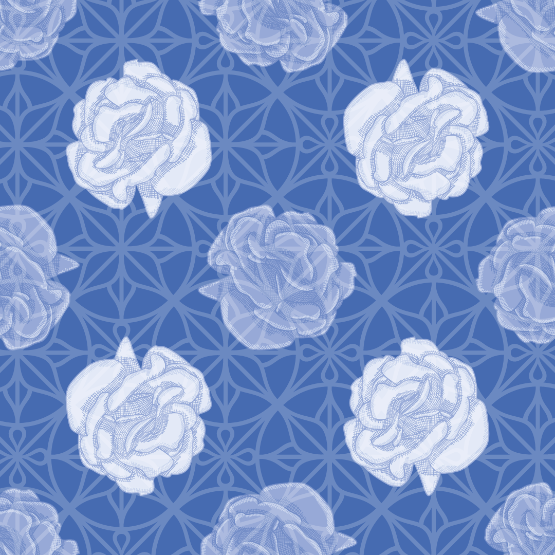 Blue Abstract Rose Seamless Pattern Background