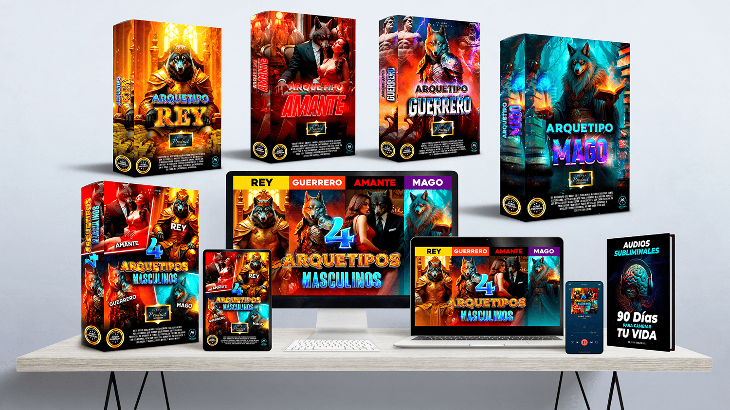 💎 Accede al poder de los 4 Arquetipos Masculinos con audios subliminales de alta calidad, diseñados para reprogramar tu mente, aumentar tu confianza, atraer riquezas, conquistar tus objetivos, ser el amante soñado de las mujeres, aumentar tu inteligencia, alcanzar tus metas, y mucho…MUCHO MÁS!