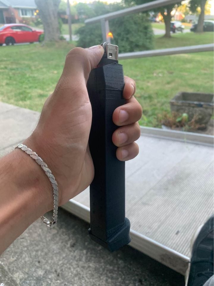 The Glock Bic Lighter Case is a unique and cleverly designed accessory that mimics the appearance of a Glock firearm. Made from durable materials, this case is specifically designed to securely hold a standard Bic lighter. Its realistic look makes it a standout piece, perfect for gun enthusiasts and those who enjoy novelty items. The case not only protects the lighter but also provides an interesting conversation starter. Additionally, the bottom slides open so you can store stuff in it, adding a practical storage feature to its list of attributes.