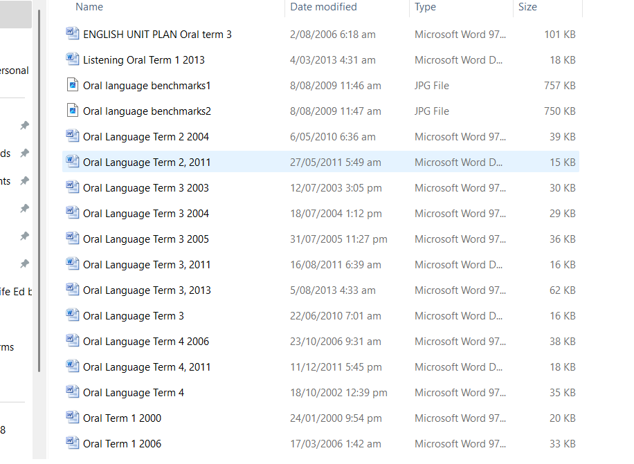 Oral language unit plans (old curriculum)