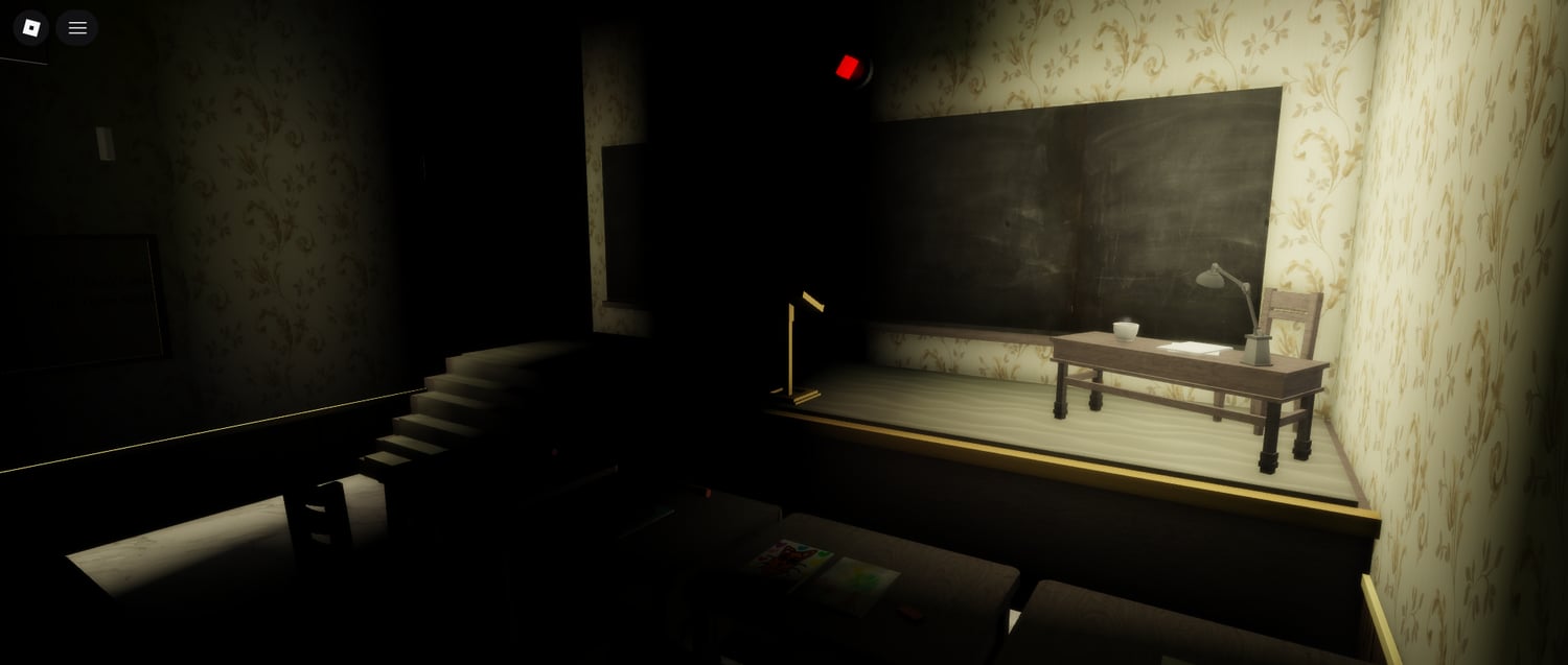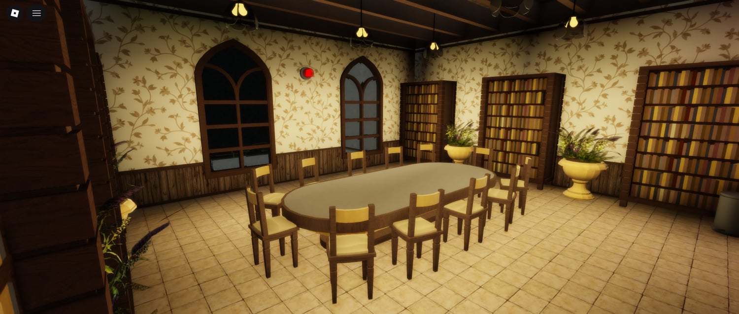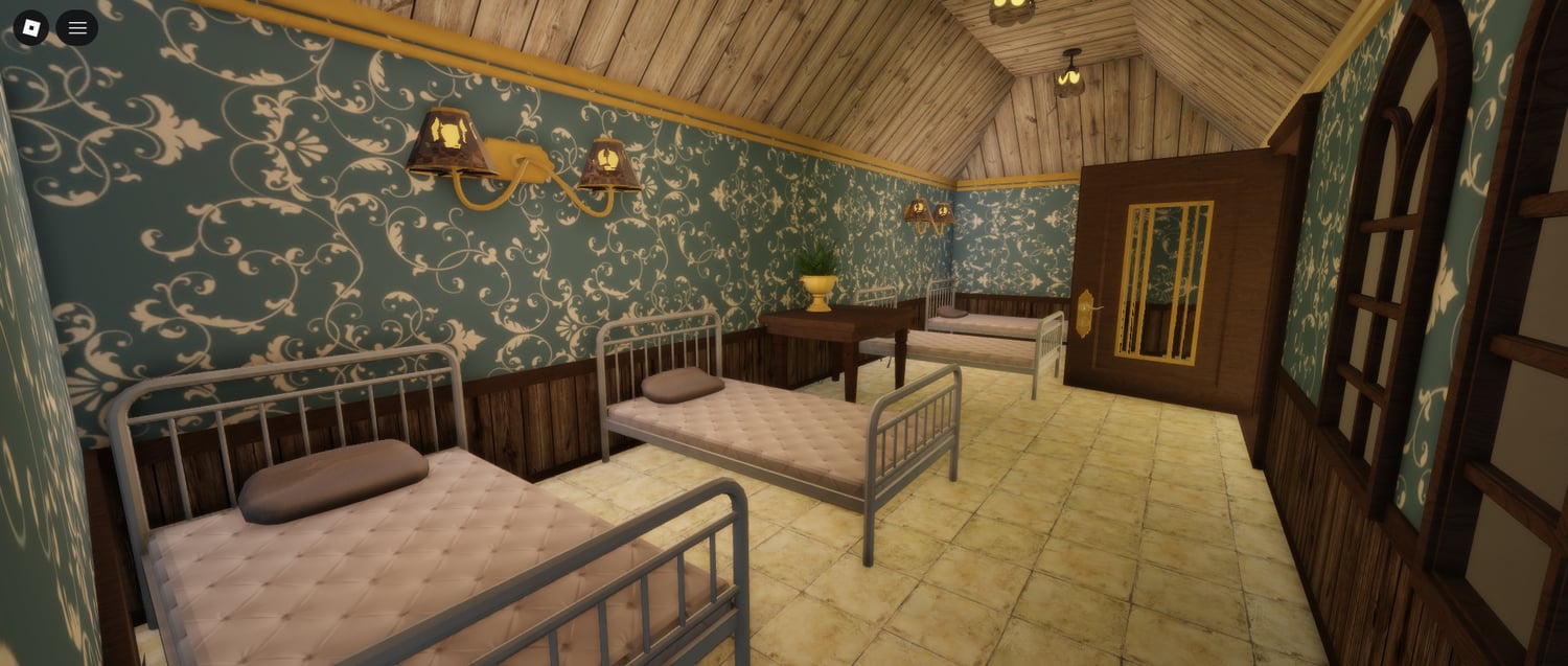 The orphanage features numerous interior areas, including bedrooms, classrooms, a cafeteria, kitchen, shower rooms, and an outdoor playground. Each space is crafted to feel uneasy and lived-in, using darkness, scale, and environmental design to create suspense. The layout encourages slow exploration, unexpected encounters, and story-based roleplay.