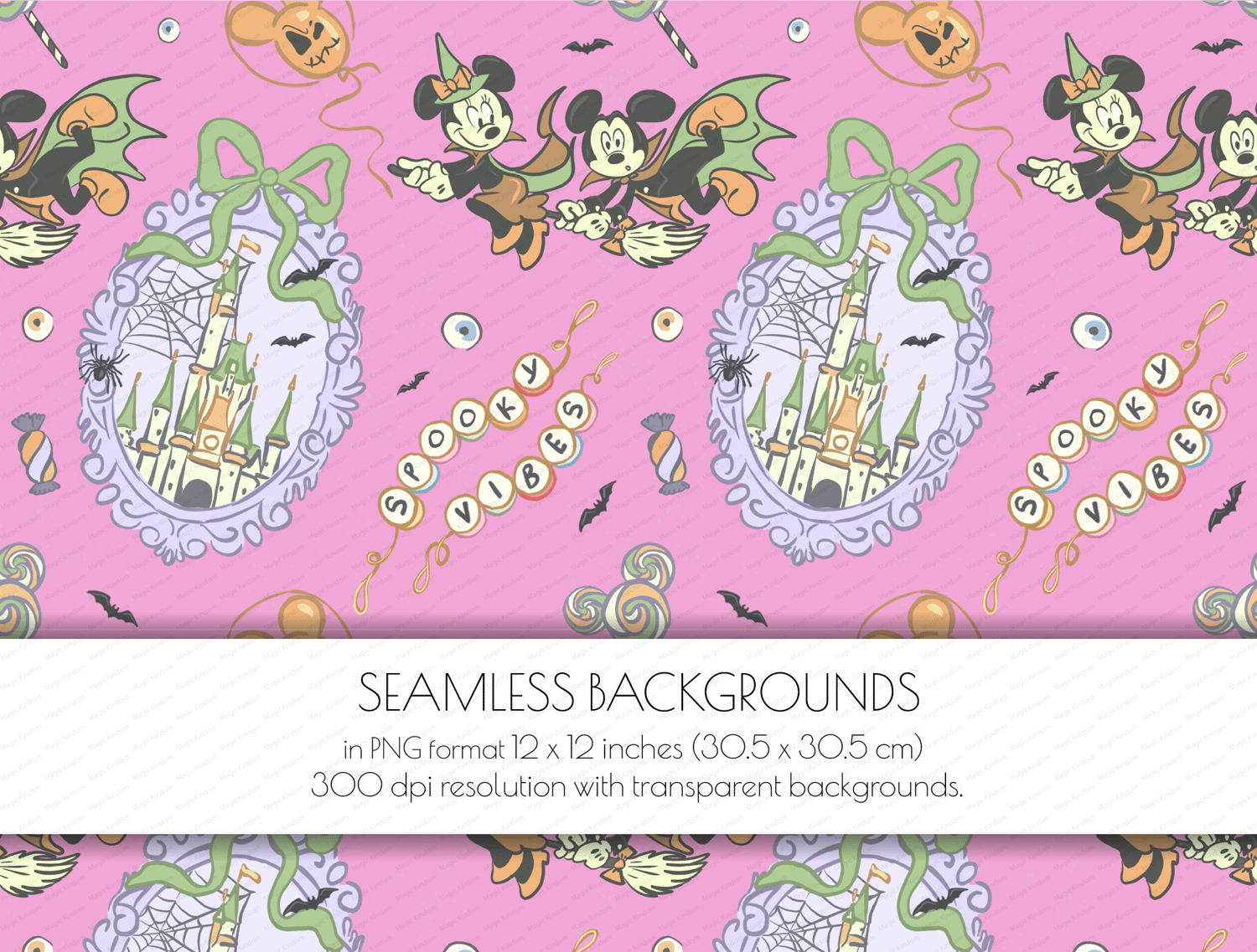 1 Spooky mickey, nightmare on main street Seamlessbackground PNG format 12 x 12 inches (30.5 x 30.5 cm) 300 dpi resolution .
