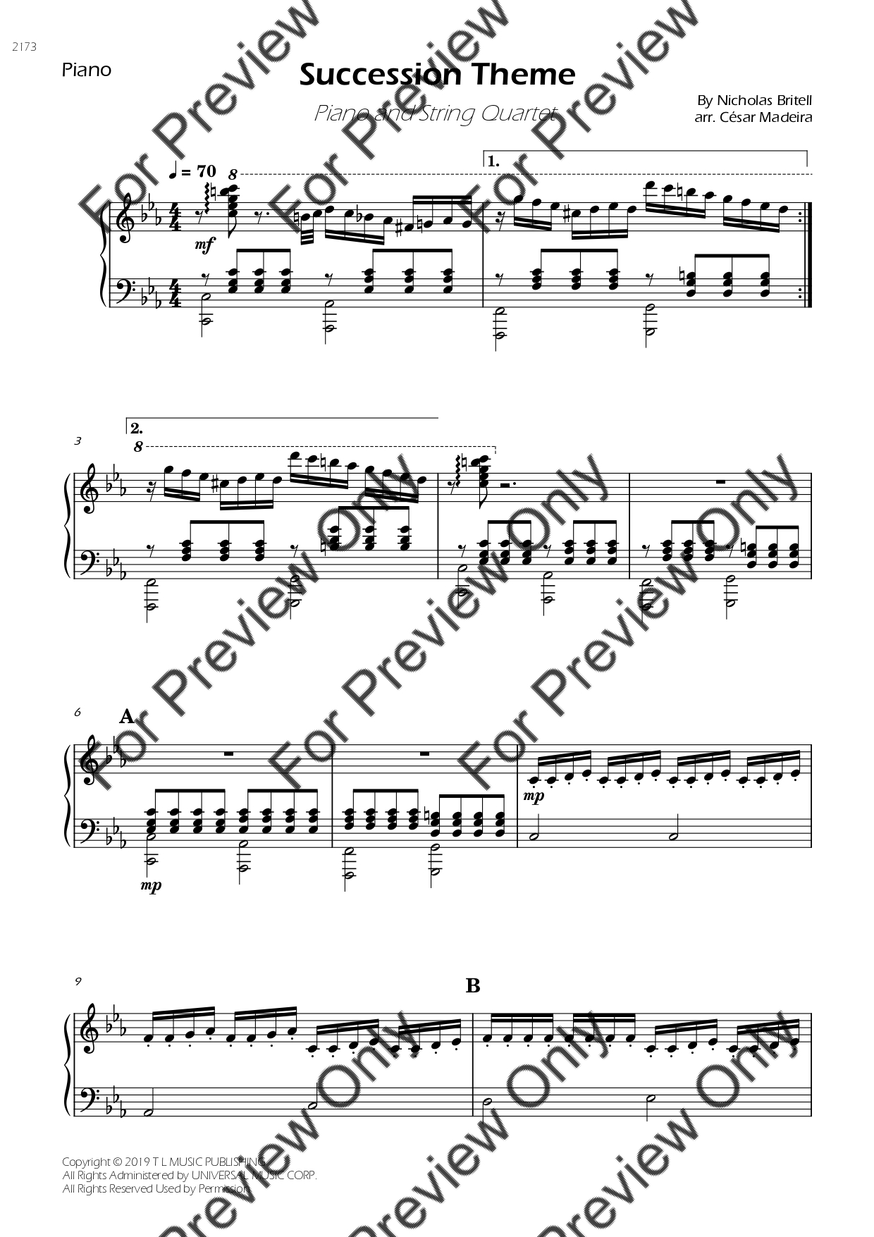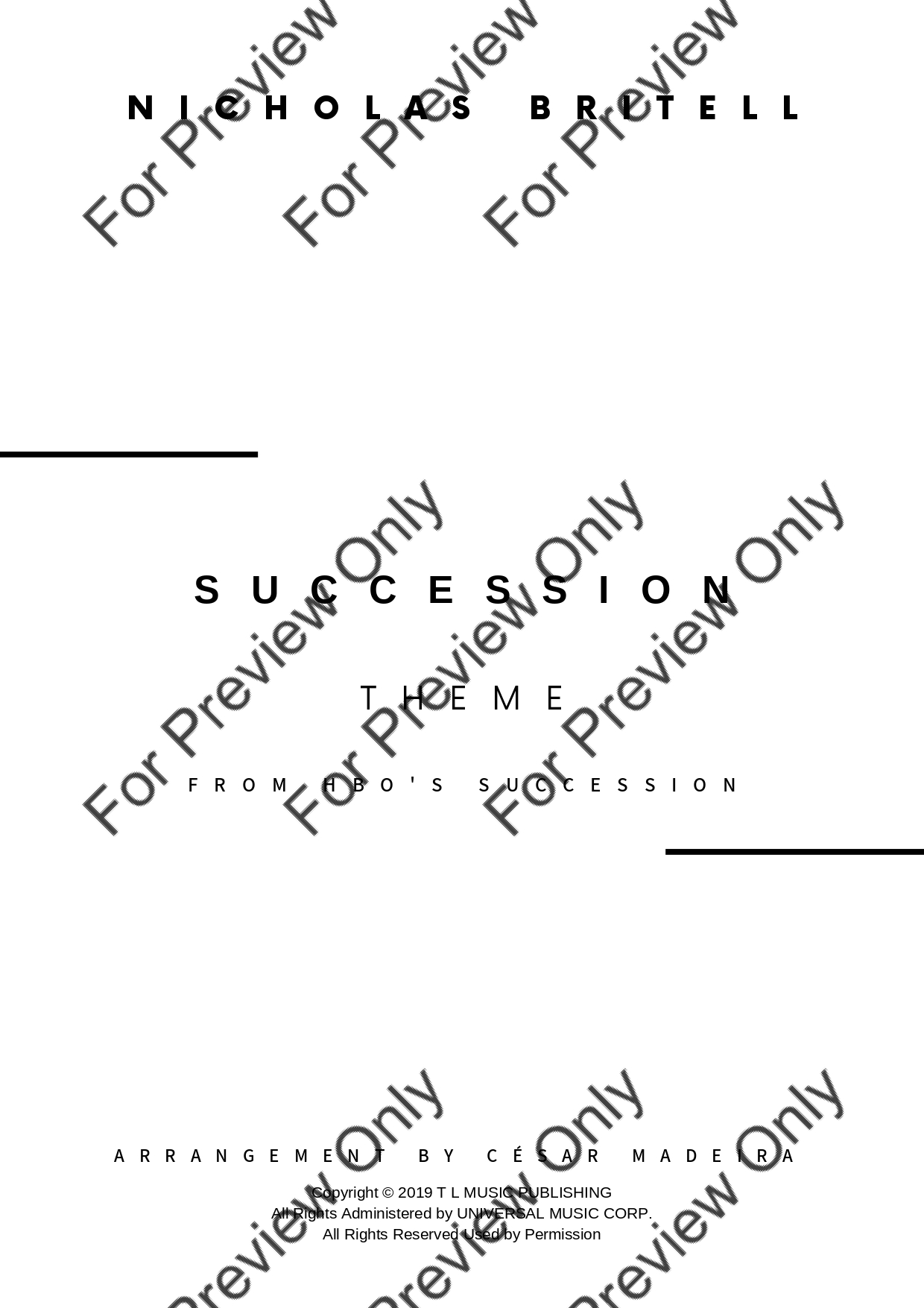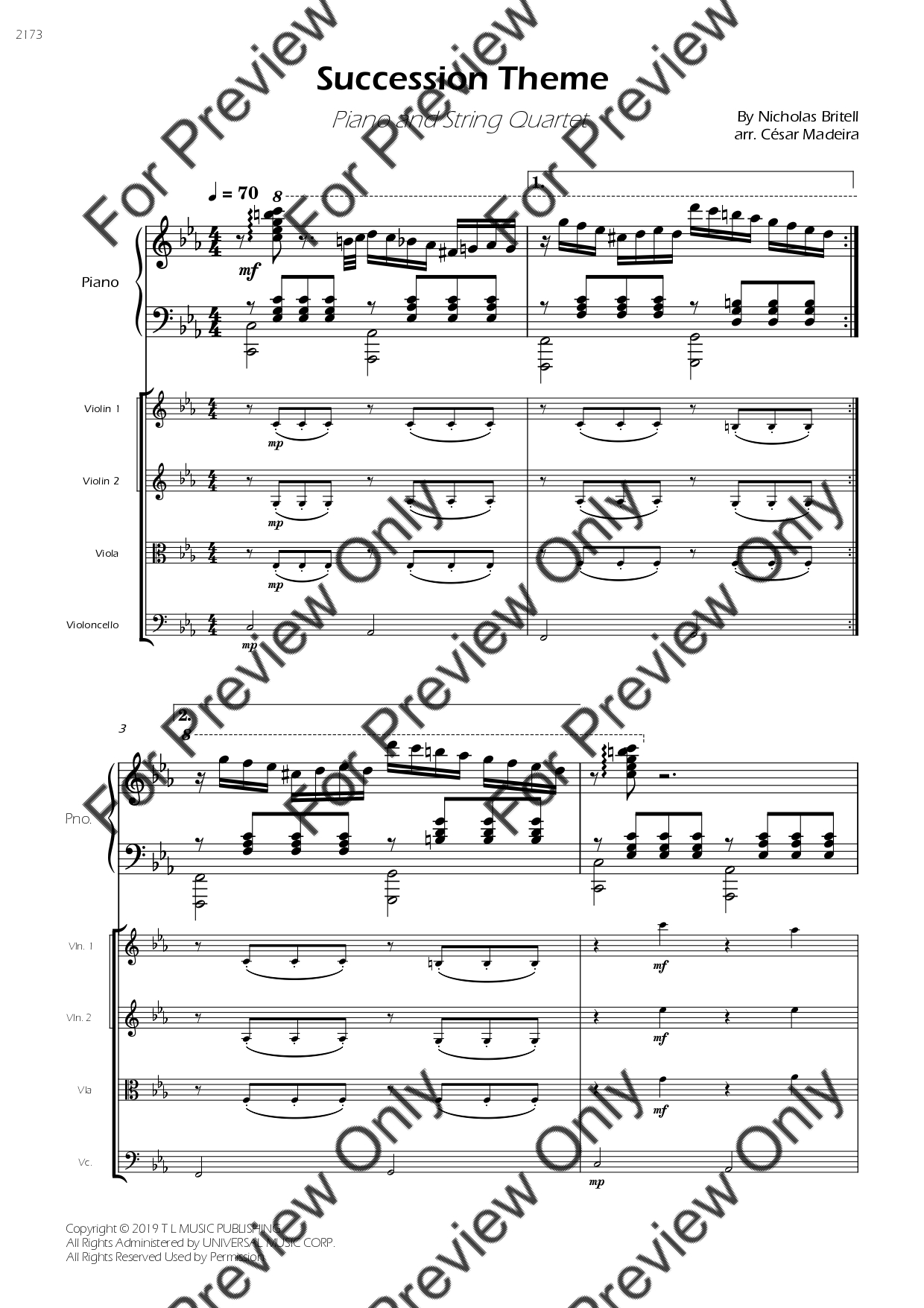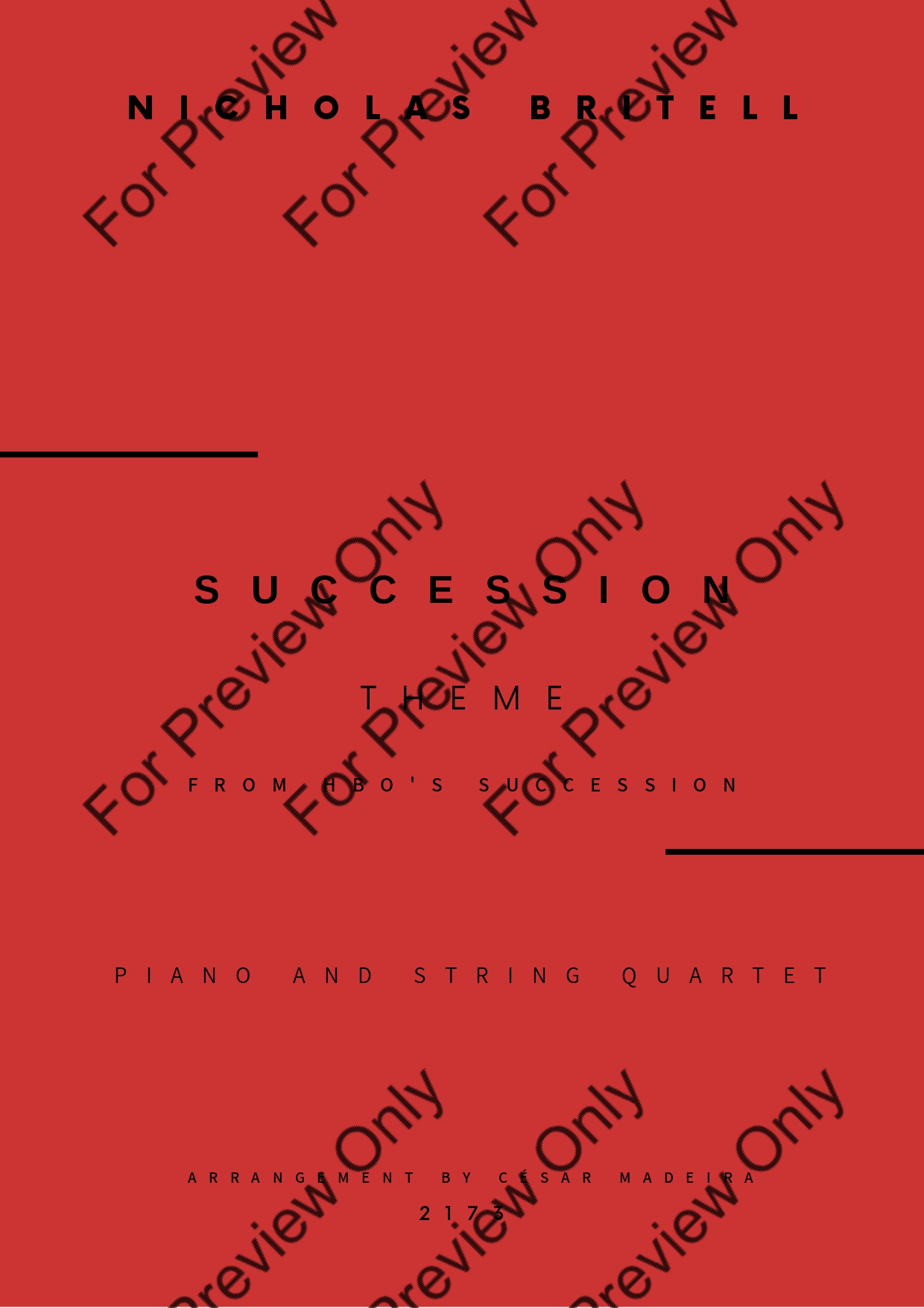 Succession Theme from HBO's Succession by Nicholas Britell. Arrangement for Piano Quintet - Piano and String Quartet. With Full Score and Individual Parts. Have fun!