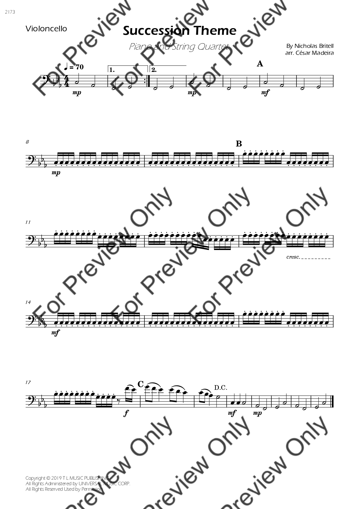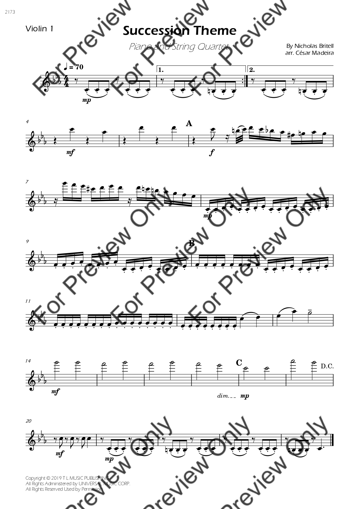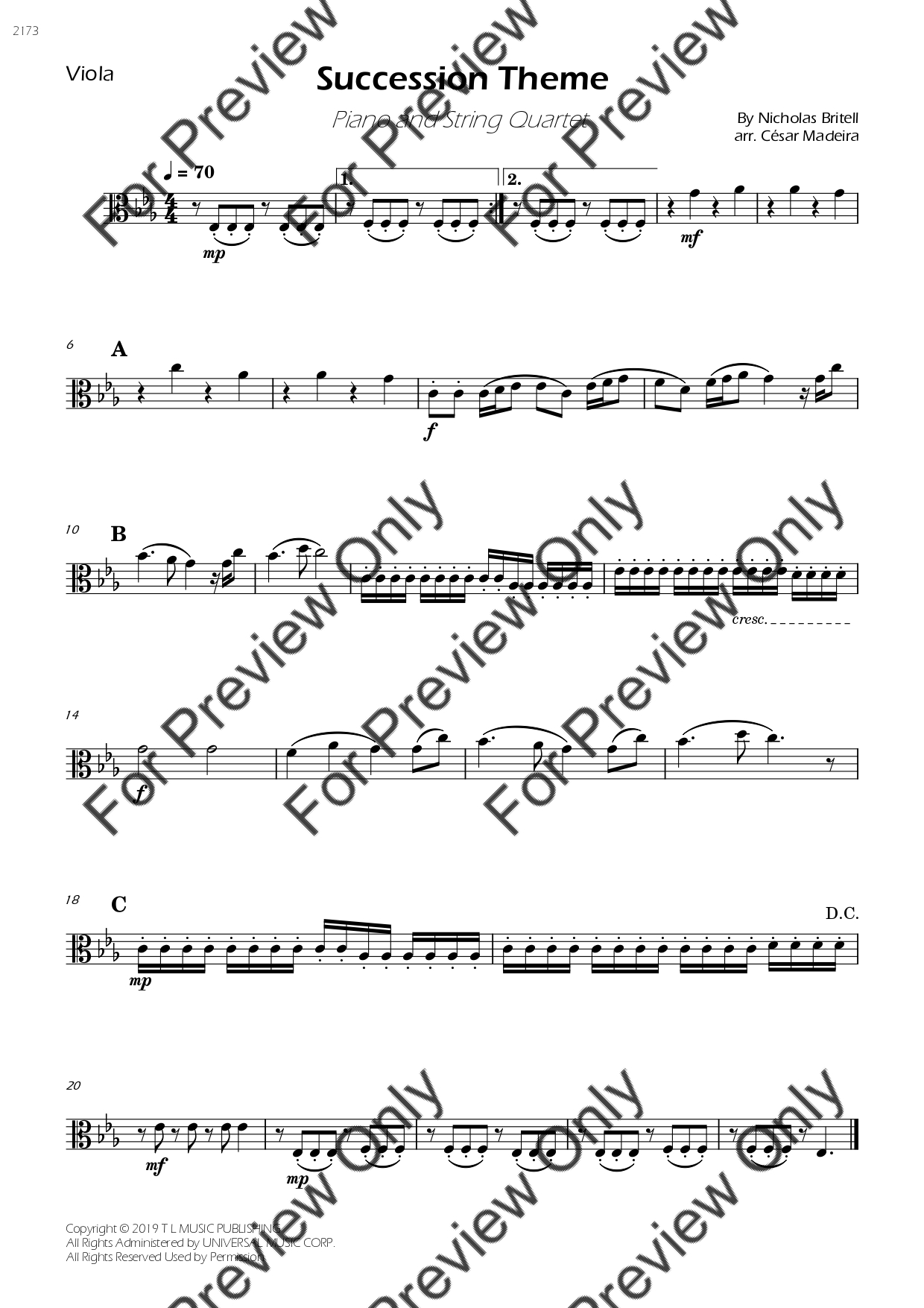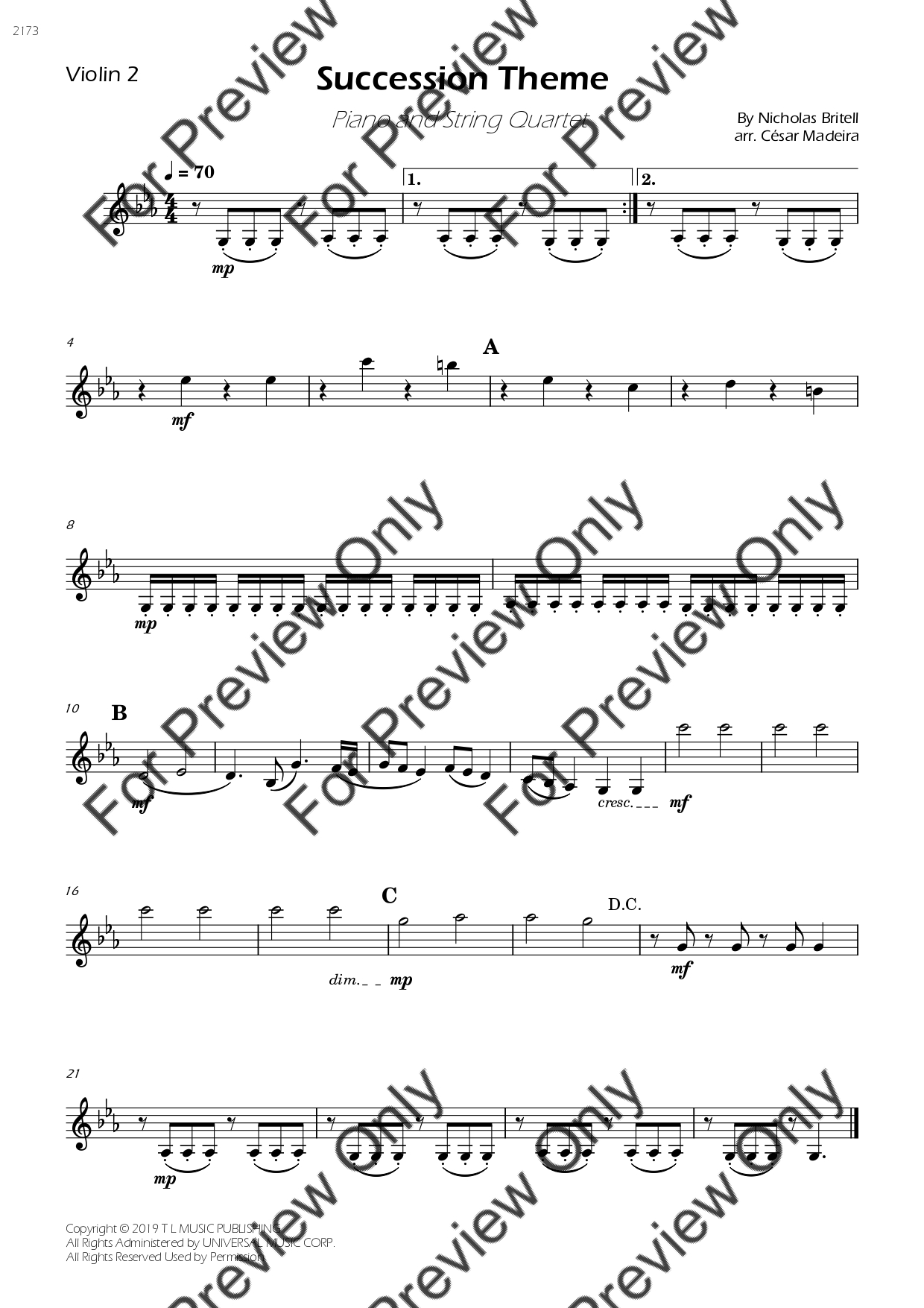 Succession Theme from HBO's Succession by Nicholas Britell. Arrangement for Piano Quintet - Piano and String Quartet. With Full Score and Individual Parts. Have fun!