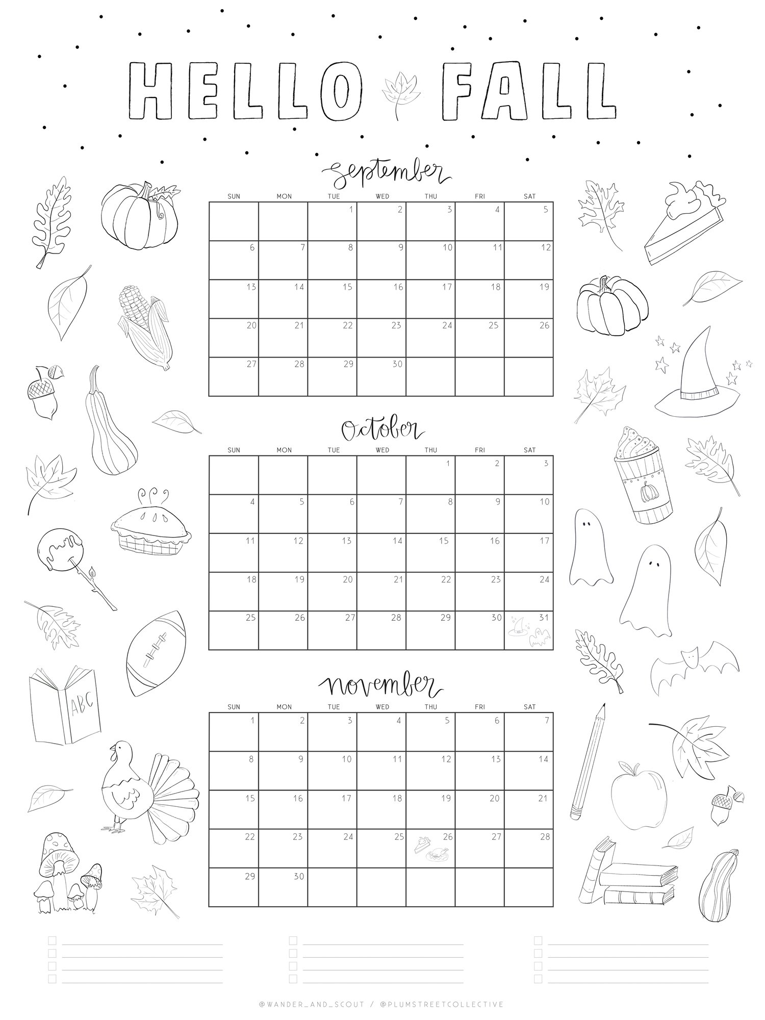 This 2026 Fall Calendar has whimsical doodles for the season, and lines for bucket list items below. It can easily be printed for only a couple dollars at your local Office Supply store, and we’ve got them formatted into the exact sizes you need for easy printing.