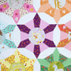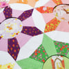 Geranium is made up of interlocking sun burst blocks and the pattern is suitable for all skill levels. Step by step, beginner friendly tutorials are provided for the EPP techniques required in making the project.