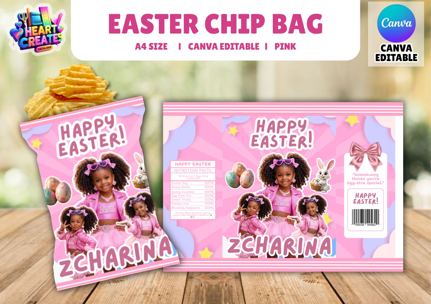 🌸 Easter Chip Bag Template – Canva Editable (A4 Size)