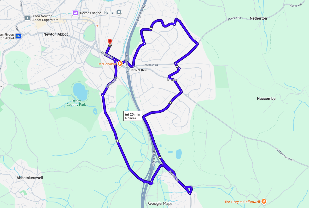Newton Abbot Driving Test Centre | 5 Google Maps Practice Routes (PDF)