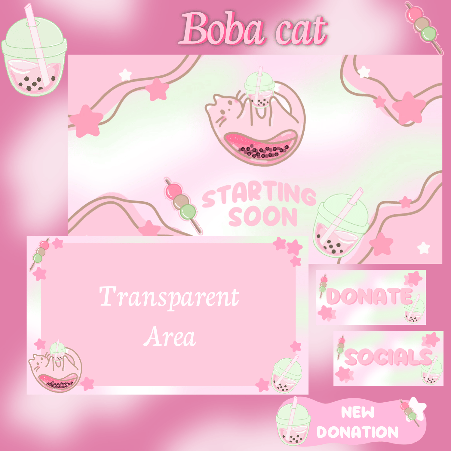 Upgrade your stream with this boba cat stream overlay pack, designed for creators who want a cohesive, eye-catching look. This set is perfect for streamers who love cute styles and want their stream to feel polished and on-brand.
